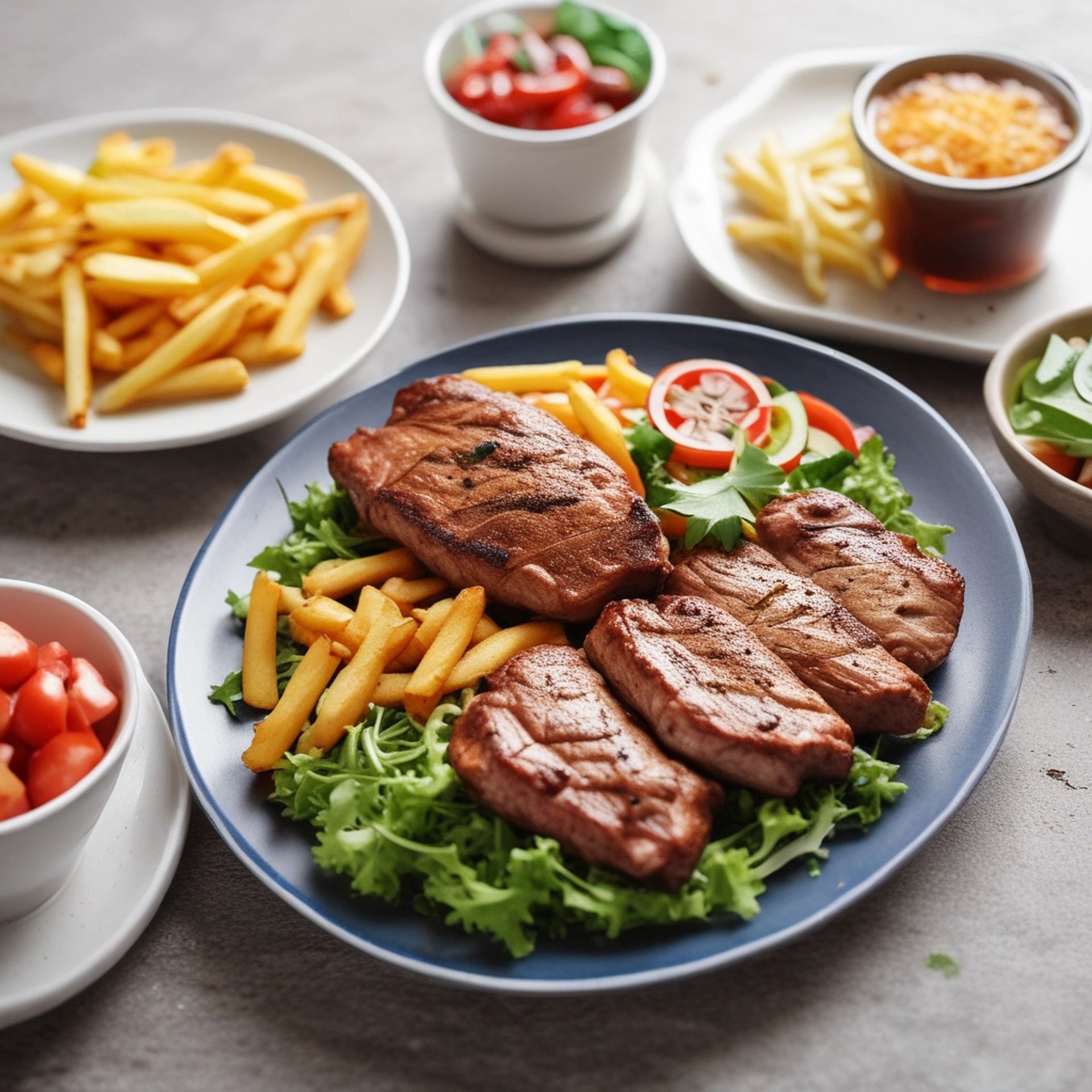 Filete de Ternera, Patatas fritas, Huevo y Ensalada