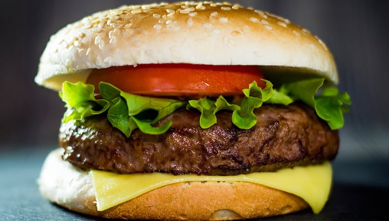 Carne de ternera, Queso, Lechuga, Tomate, Cebolla y Patatas fritas
